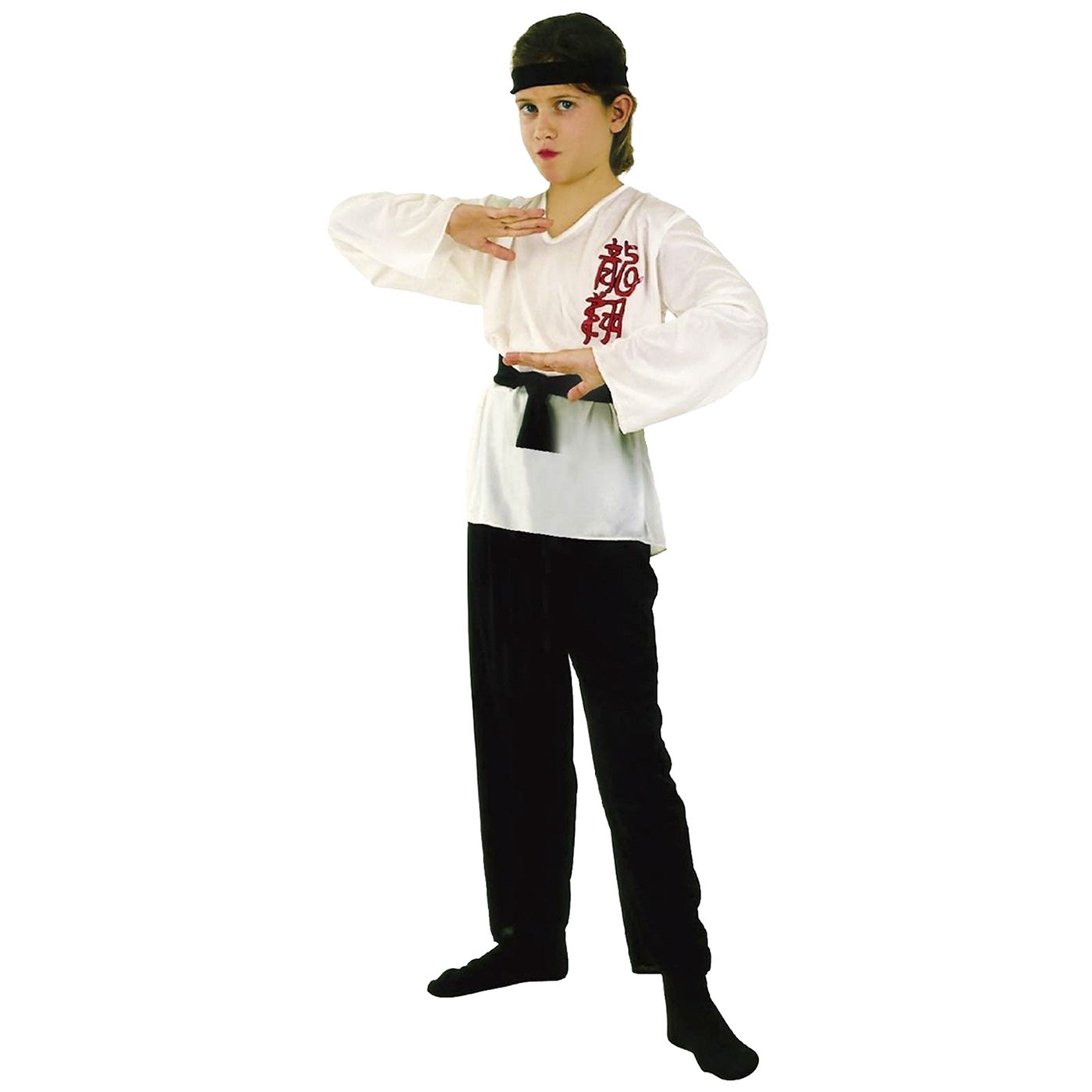 Children’s karate costume in a complete set with pants, shirt, belt, and headband. Ideal for training and carnival appearances.
