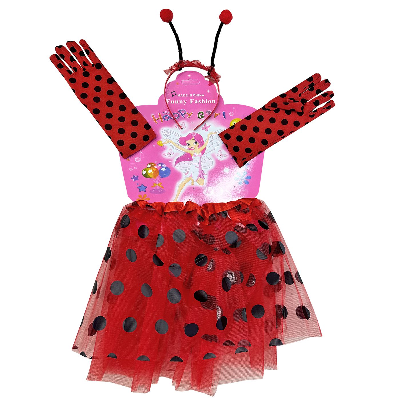 Ladybug children’s costume set of 4 pieces for sizes 3–5. Ideal for carnival and children’s parties, easy to use and comfortable for play.