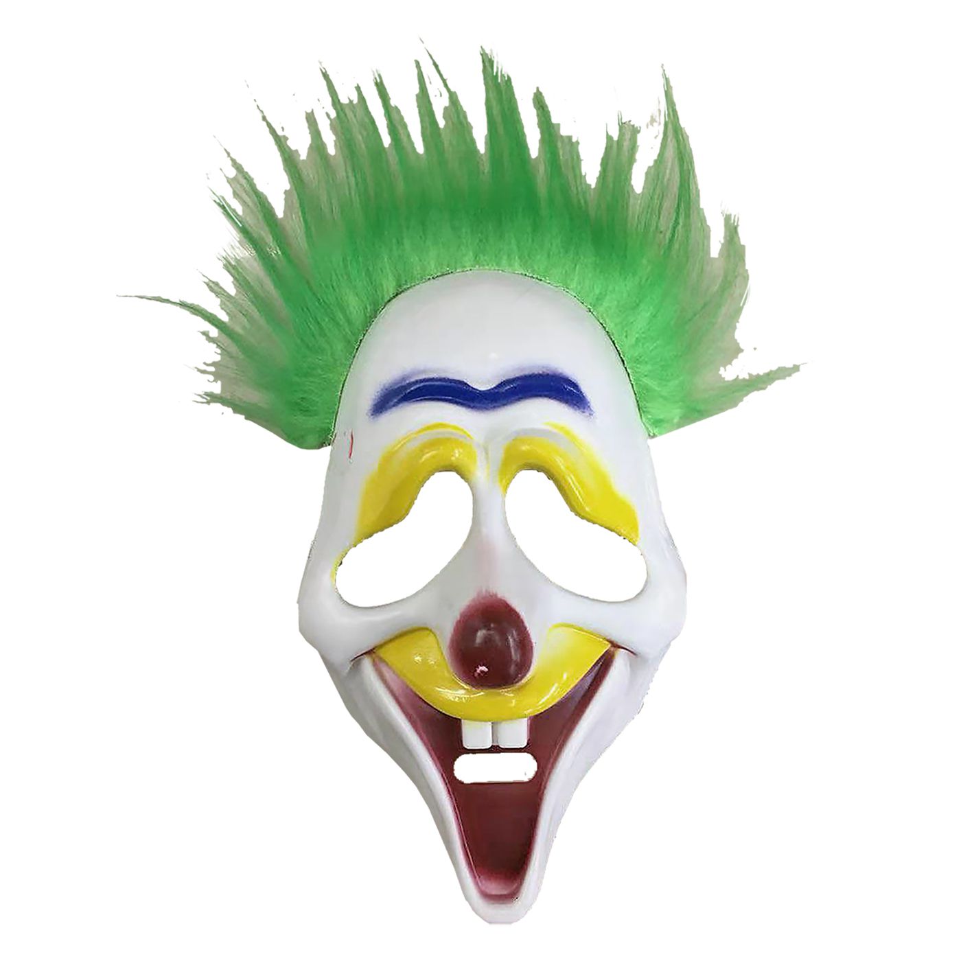 Clown mask made of hard plastic with green hair — ideal for Halloween, carnival, and themed parties. Fits comfortably and is reusable.