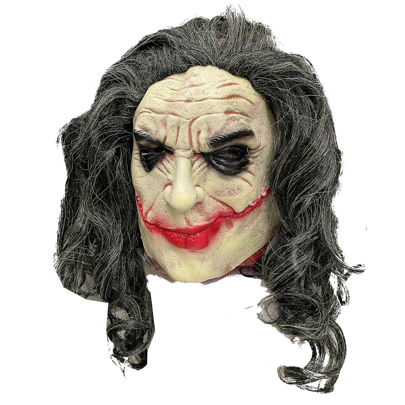 Latex mask with a ‘villain’ design – bright red mouth and green hair, ideal for Halloween, carnival, themed parties, and performances. The elastic latex offers a realistic look and comfortable fit (one size fits most face sizes). Lightweight and durable construction, easy to care for (wipe with a damp cloth, avoid heat and oils). Perfect for costumes, photoshoots, and shows.