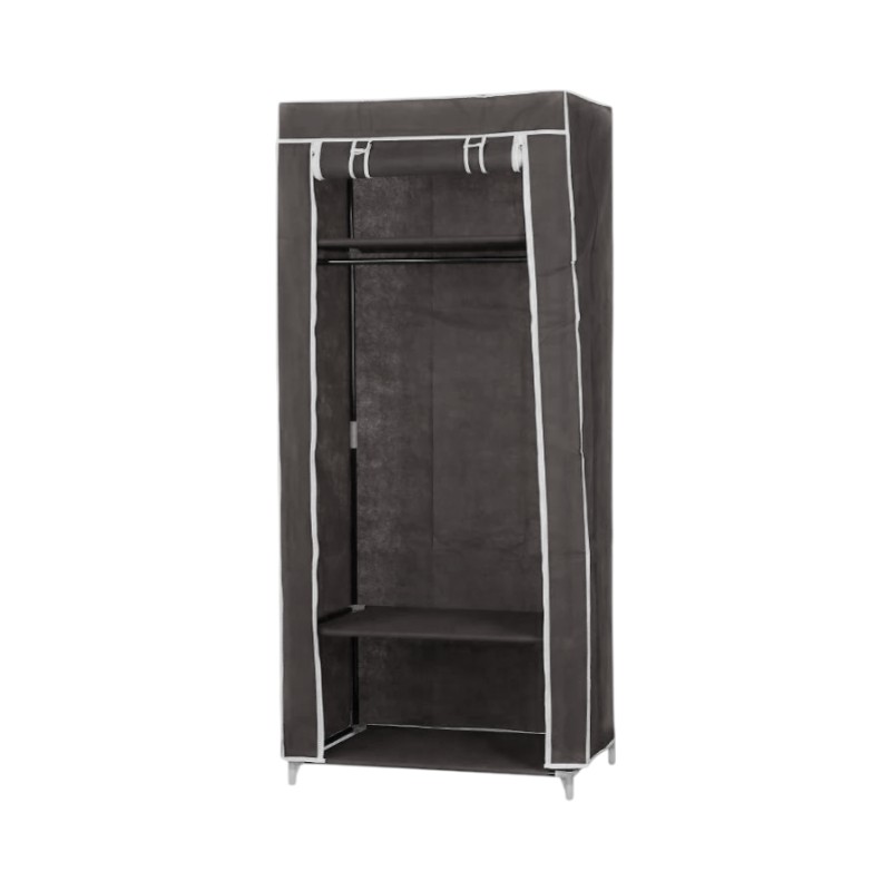 Fabric wardrobe with shelves, suitable for shoes, clothes, linens, and anything you wish to store. Easily assembled, with a sturdy construction featuring a metal frame and durable non-woven fabric that resists moisture and dust. The front opens with a zipper and rolls up, secured with velcro straps for easy access. Ideal for your home, vacation house, or storage.