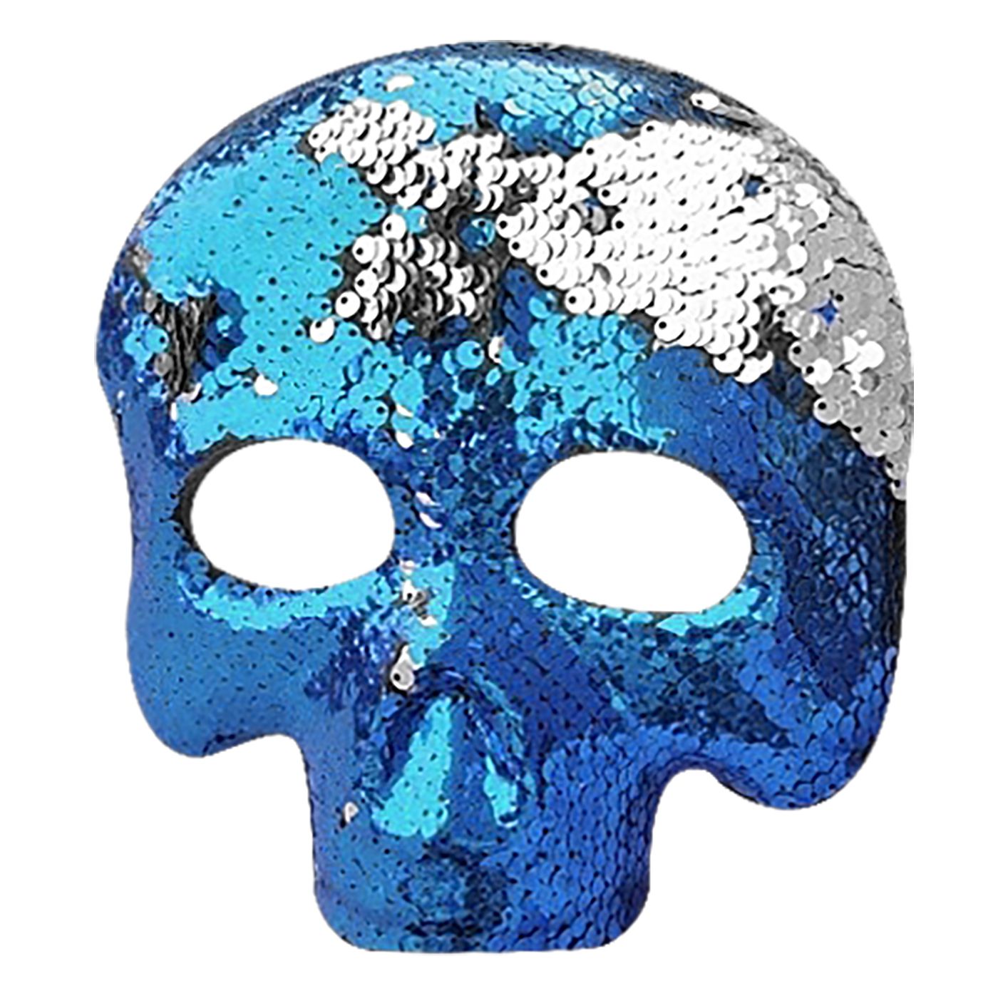 Decorative face mask with blue sequins, ideal for carnival, parties, and theatrical performances. Lightweight and striking, it adds sparkle to any look.