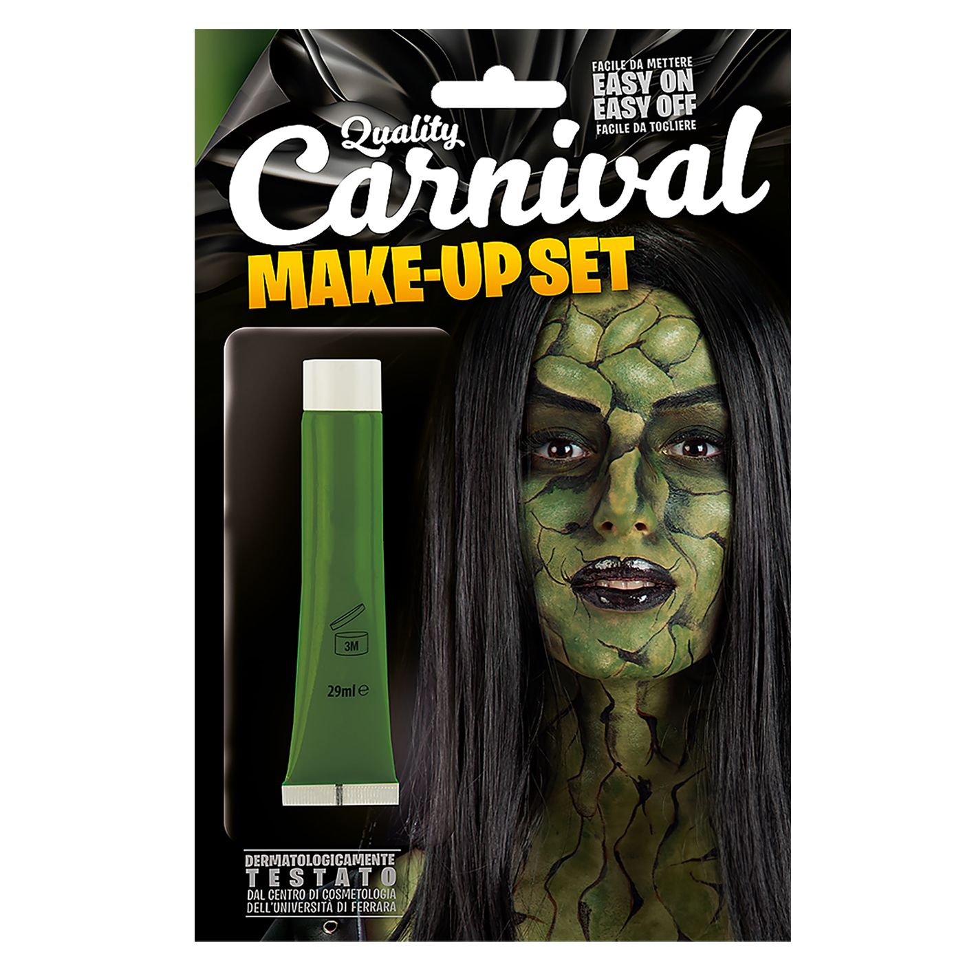 Green face paint 28.3 ml in a tube for theatrical makeup and parties. Easy application and practical packaging.