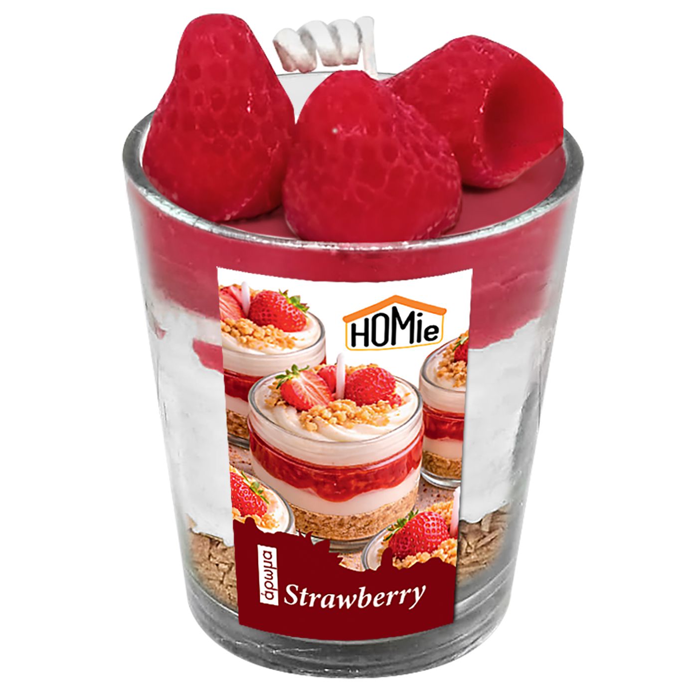 Jar Candle Dessert Design with Strawberries 180g net 8.5x ø7cm (total height=11cm) Homie 57515