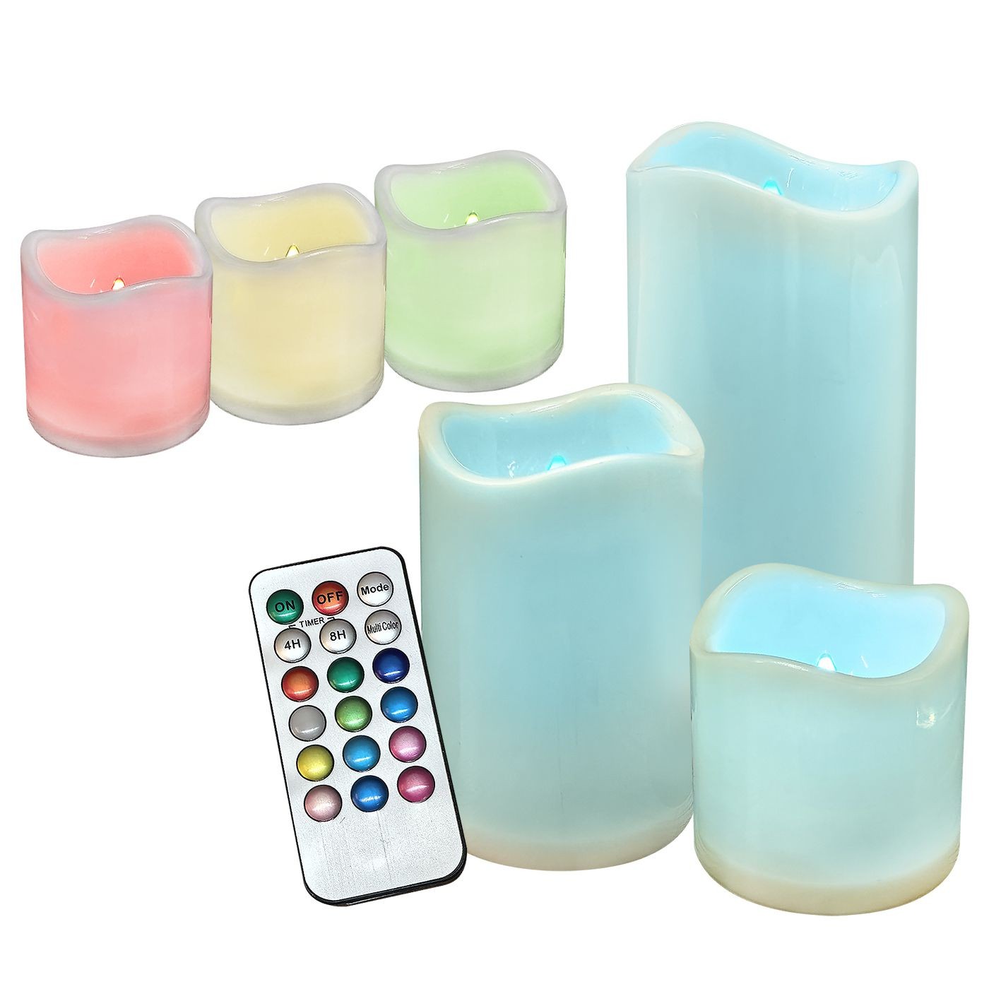 Set=3 LED candles. With control. Choice of 12 colors 15x ø7.5cm, 11.5x ø7.5cm, 7.5x ø7.5cm