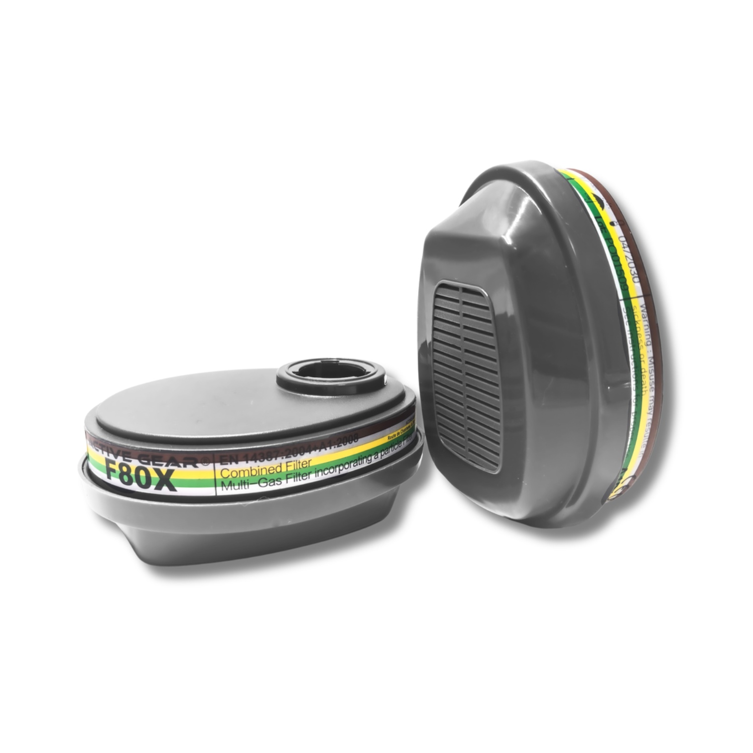 Filters A1B1E1K1 P3 R D (2 pcs.) AIR F80X with activated carbon and polypropylene filter for triple protection against organic, inorganic/acid gases and toxic particles, compatible with M40X and M90X masks via bayonet. Ensures