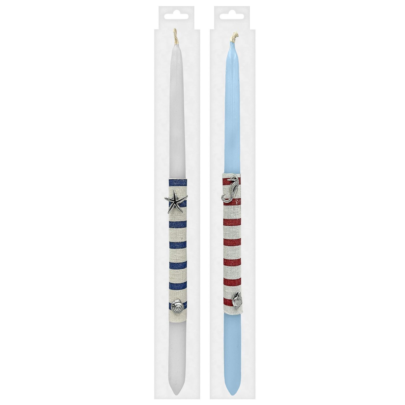 33 cm candle decorated with metal shells, designed for Easter use and as an elegant decorative element. The metal finish on the shells adds shine and texture, suitable for ceremony decoration or as a gift. Compatible with traditional candle use and as a seasonal decoration item in shop windows and homes.