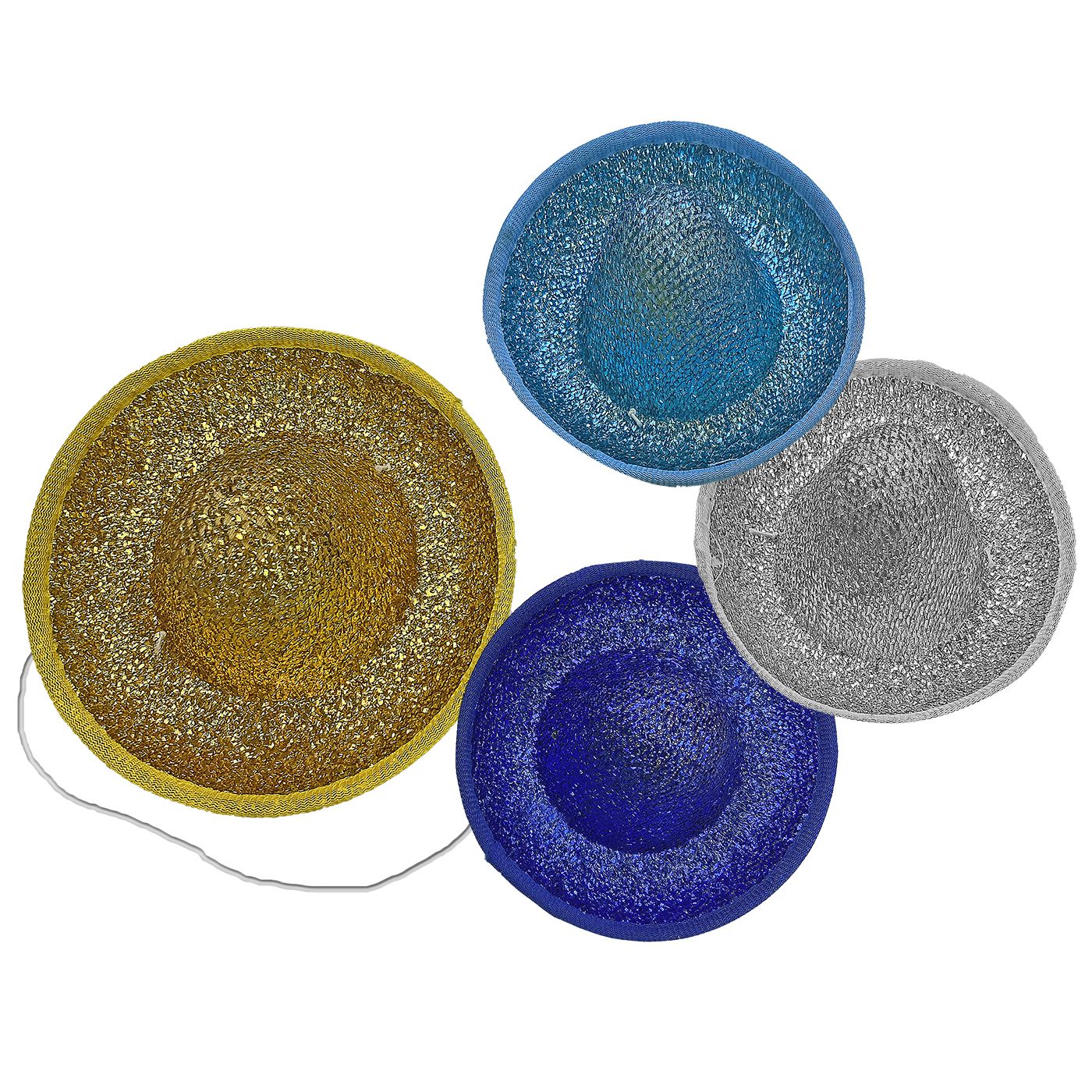 Small hat 12x7cm with glitter and string for fastening. Ideal for carnival, parties, and theatrical performances — lightweight, impressive, and easy to use.