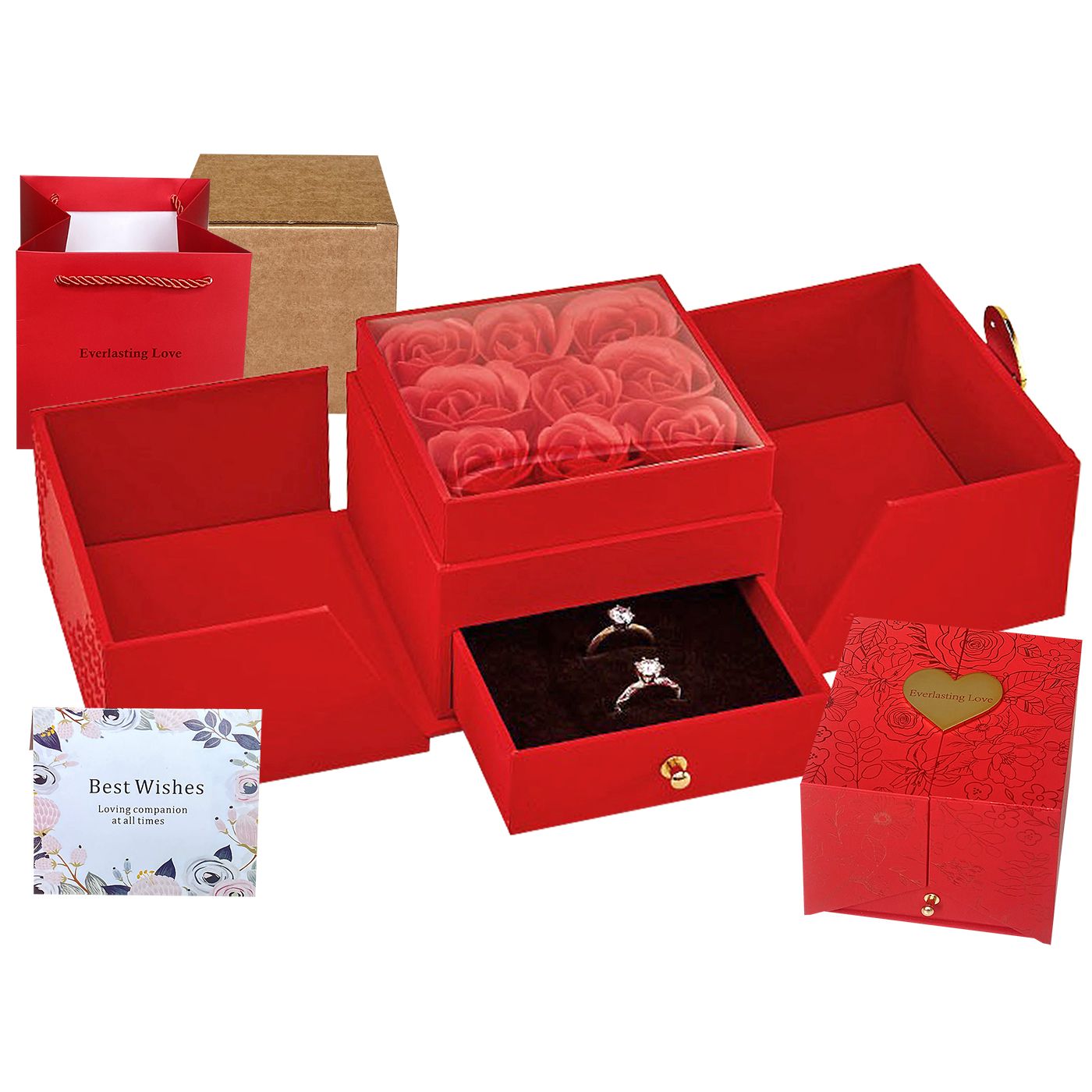 Small open box with a drawer-jewelry box, ideal for roses, gifts, or storing small jewelry. Dimensions 11.5×11.5x9cm, elegant and practical.