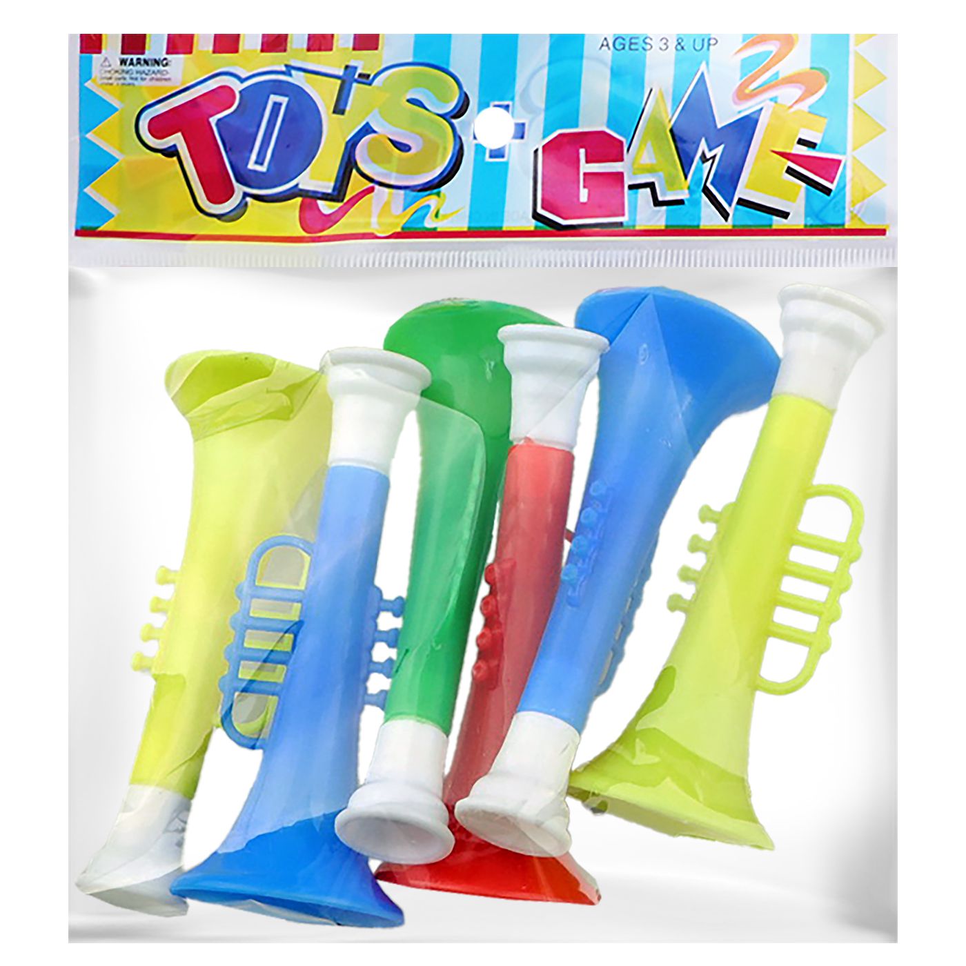 Set of 6 small plastic kazoos 9 cm in a variety of colors. Ideal for children’s parties, birthdays, and events — lightweight, easy to use, and reusable.