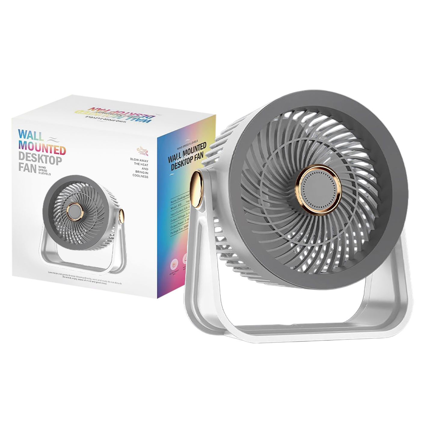 Rechargeable fan. Contains battery. With 3-option light. 3 speeds ø17x21x9.5cm