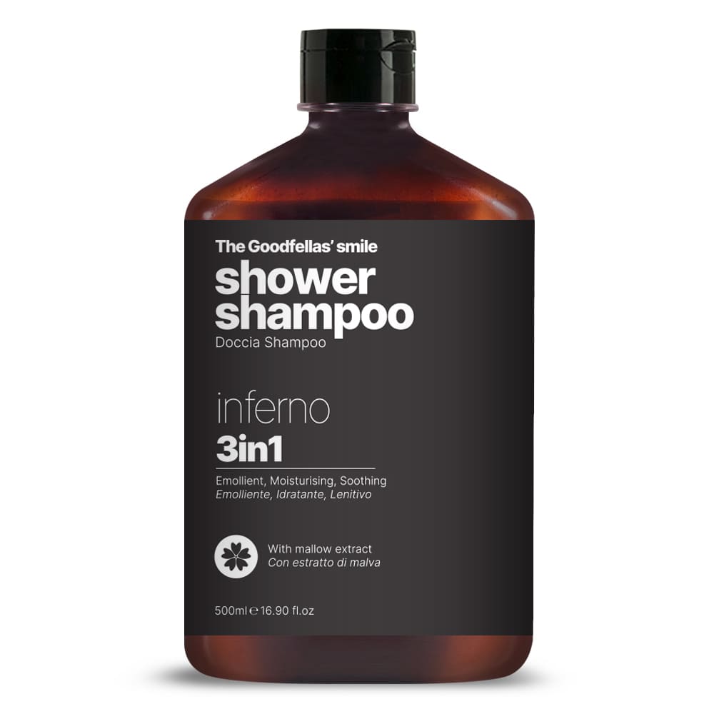 The Goodfellas’ smile shower shampoo Inferno makes the hair soft and shiny and thanks to Mallow extract, moisturises dry skin.