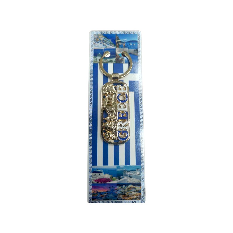 Tourist keychain Souvenir, made of stainless steel and high-quality materials, with impressive embossed designs representing Greece. Pack of 12 pieces. Length: approx. 11cm.