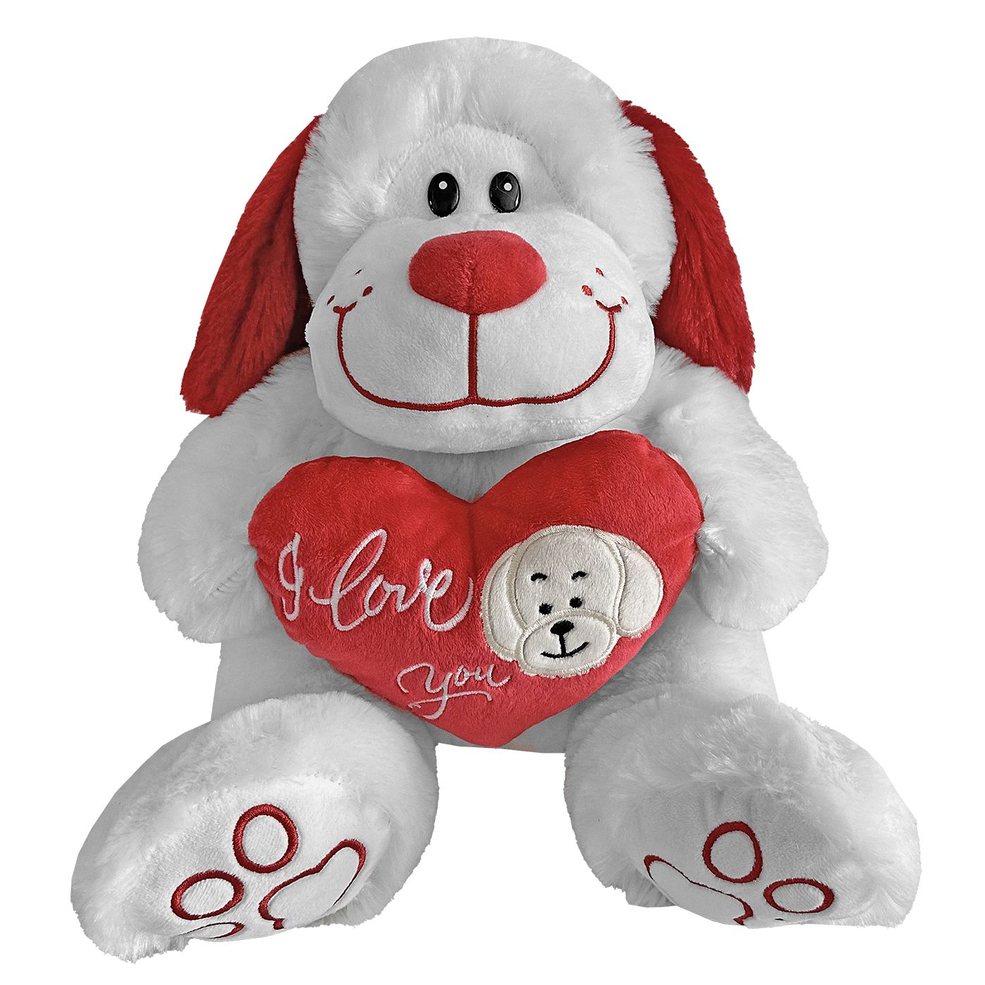 White Teddy Bear Long Ears and Red Heart 30cm ToyMarkt 99503