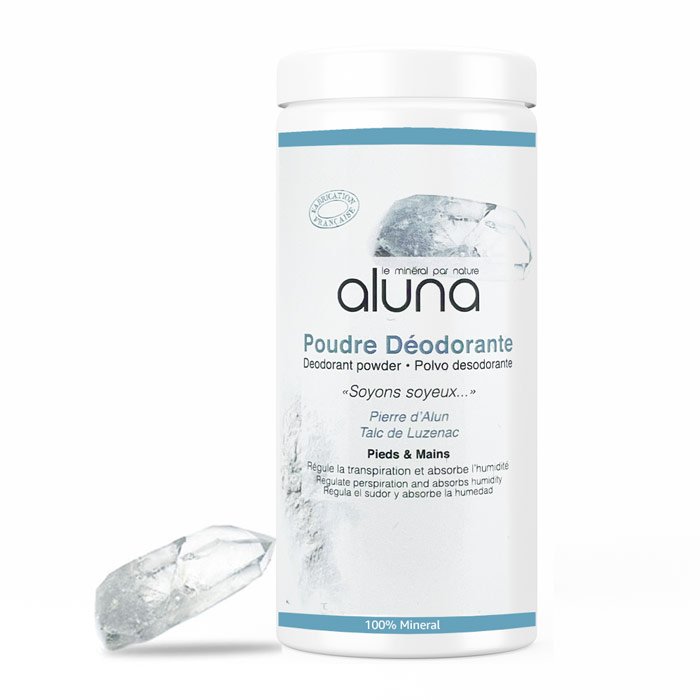 La polvere deodorante ALUNA può essere applicata a contatto con la pelle (piedi, mani braccia…) o direttamente nelle scarpe.