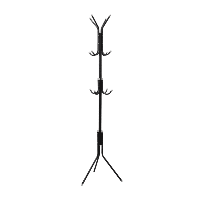Appendiabiti in metallo da posizionare liberamente 175×40 cm con doppio appendiabiti per vestiti e borse. Ideale per ingresso o camera da letto, finitura nera e design compatto.