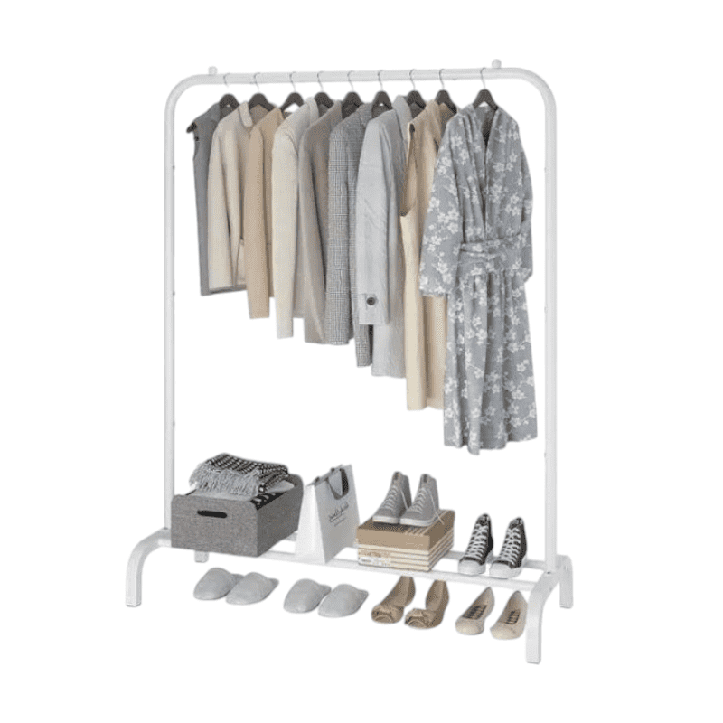Appendiabiti da terra singolo, in metallo, con ripiano per scarpe, ideale come mobile d’ingresso o per organizzare i vestiti nella tua stanza.