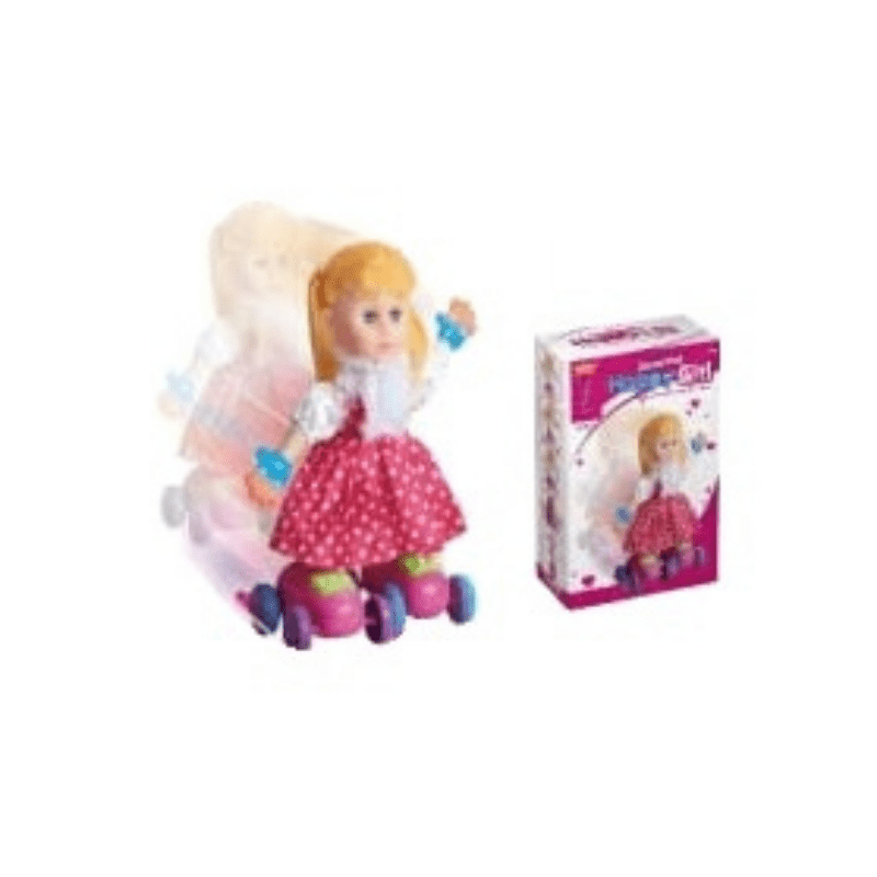 Bambola con pattini a rotelle che balla, dimensioni 29,5x21x11,5 cm. Adatta per bambini dai 3 anni in su, conforme a tutte le norme di sicurezza.