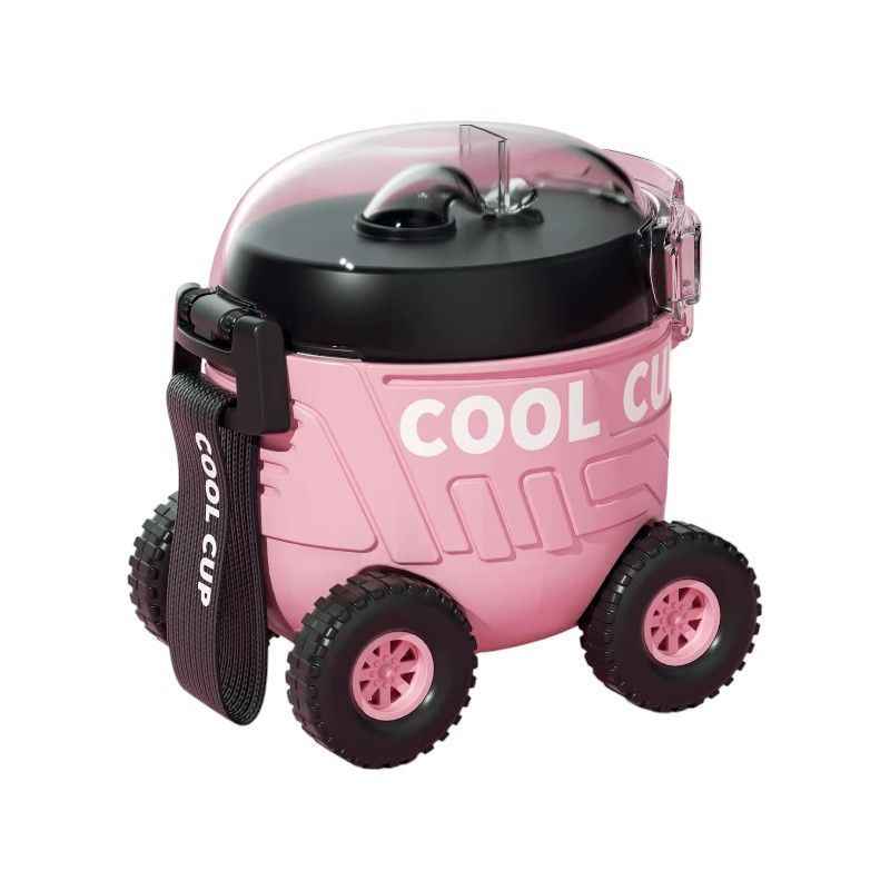 Borraccia portatile in plastica, con design a macchinina, con rivestimento ad alta resistenza che aiuta a mantenere la temperatura del contenuto.