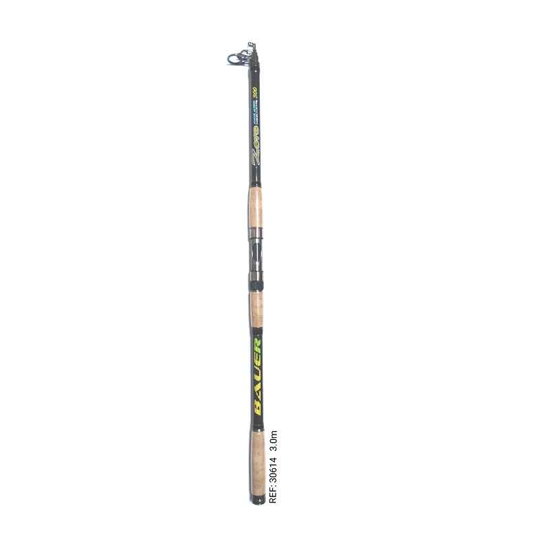 Canna da casting telescopica 3,0 m in fibre rinforzate con guide e impugnatura ergonomica, progettata per lanci da 75–150 gr.