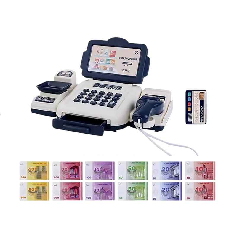 Mini cassa elettronica da gioco con design realistico e accessori per il gioco di ruolo. Adatto a bambini di età superiore a 3 anni, conforme agli standard di sicurezza.