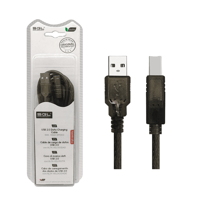Cavo USB 2.0 – USB-A maschio a USB-B maschio, con copertura protettiva rinforzata. Lunghezza: 5m.