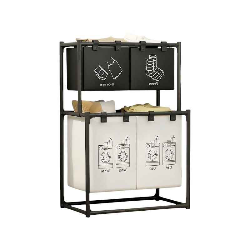 Cesto per biancheria in tessuto, assemblabile, con tessuto impermeabile resistente e design pratico con scomparti separati.