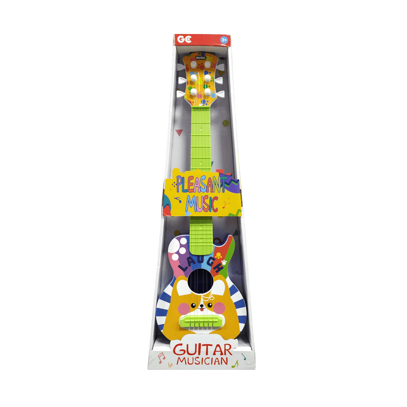 Chitarra giocattolo felice con design colorato, adatta per bambini di 3 anni e oltre. Leggera, sicura e ideale per i primi passi musicali.