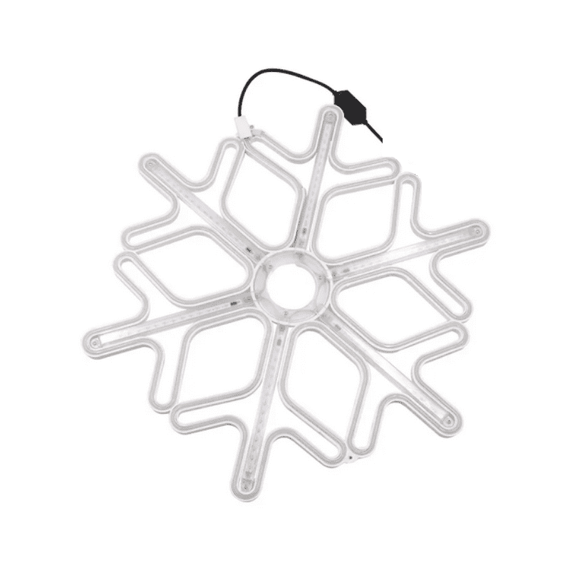 Decorazione luminosa natalizia a forma di fiocco di neve con tubo LED Neon e luci intermedie con movimento lineare che creano un effetto di illuminazione impressionante.