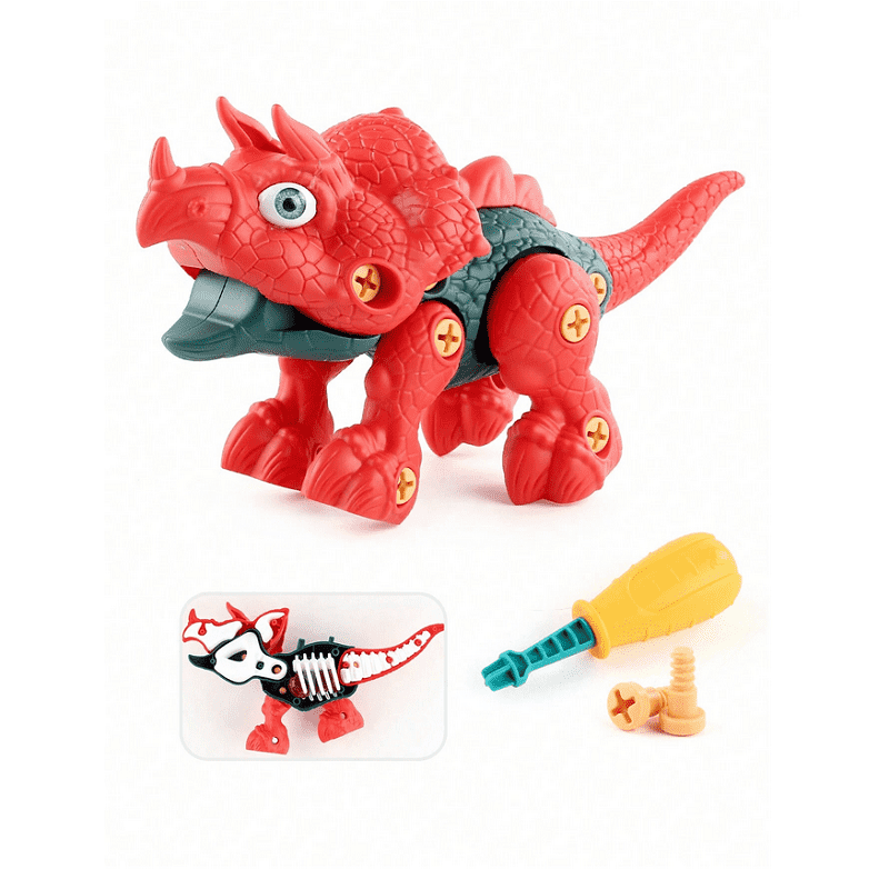 Figura di dinosauro assemblabile con movimento e dettagli particolari, con tutti gli strumenti e gli accessori necessari per un gioco educativo e creativo!