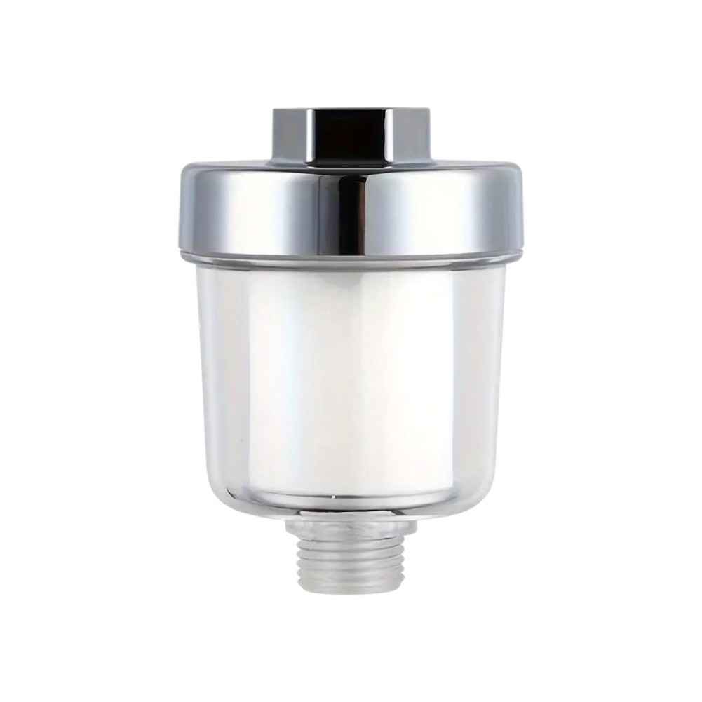 Filtro doccia in ceramica con doppia connessione che trattiene cloro, sali e metalli pesanti (piombo, rame). Durata 8–10 mesi (~10.000L), elemento rimovibile e lavabile, facile da installare.