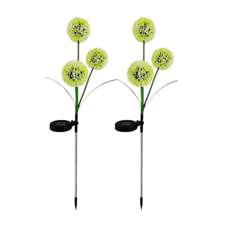 Set da 2 fiori solari LED illuminati con batteria ricaricabile NiMH 600mAh, IP65 e palo metallico—fino a 10 ore di illuminazione dopo 8 ore di ricarica solare.
