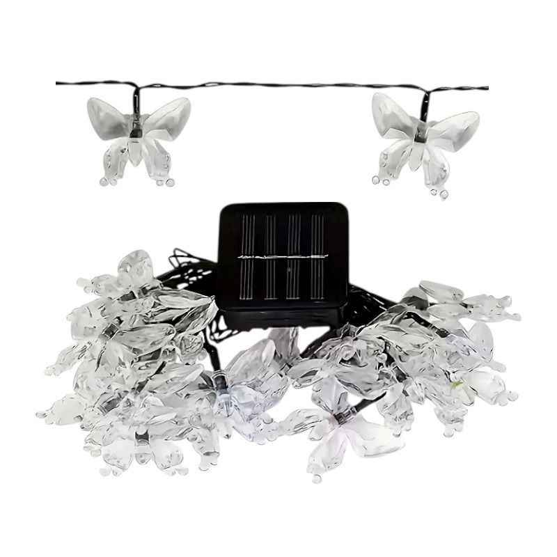 Ghirlanda solare a LED con lampadine in un design impressionante a farfalla, con cavo rinforzato e pannello solare regolabile, ideale per un’illuminazione atmosferica bella sul balcone, in giardino o sulla veranda, facile, wireless ed economica senza bisogno di accesso alla corrente.