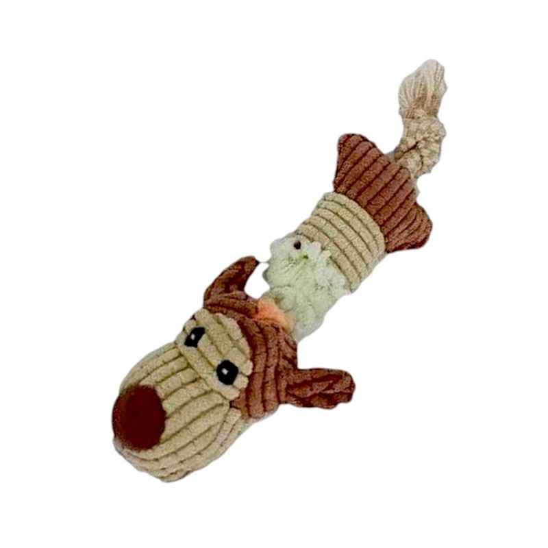 Giocattolo di peluche per cani 24x7cm con corda integrata. Materiale morbido, resistente e non tossico, ideale per il gioco quotidiano e la masticazione.