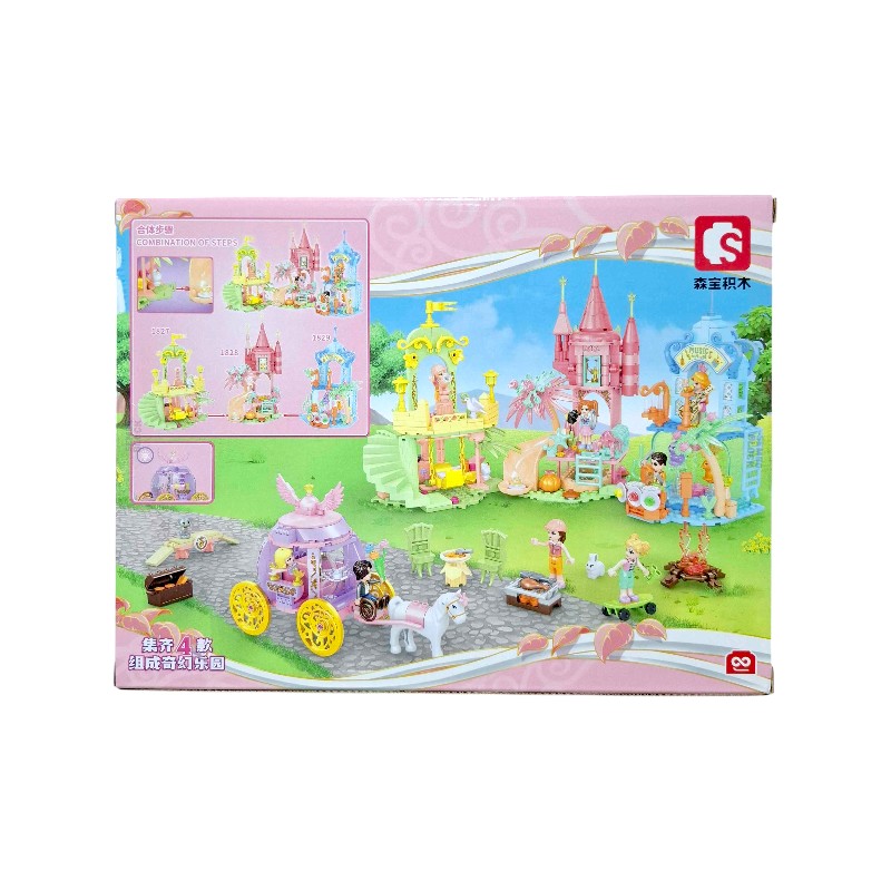 Set assemblabile «Paese delle Fiabe», adatto per bambini da 3 anni in su. Sicuro, facile da assemblare, con dimensioni compatte della confezione 28,5×24,5×24 cm.