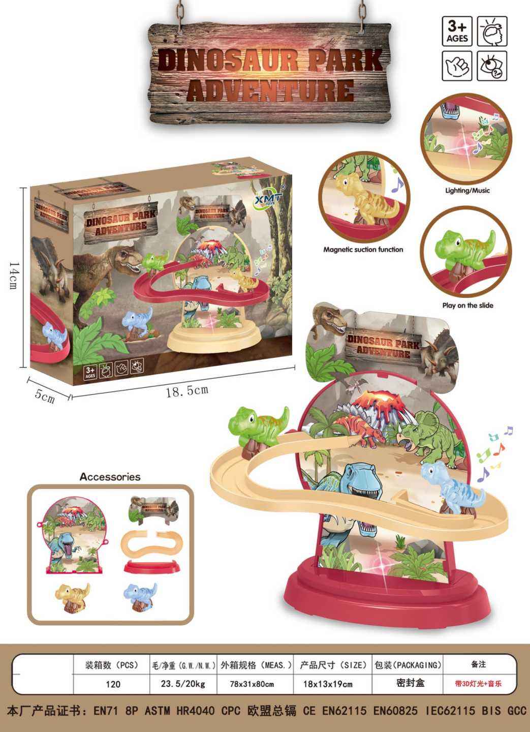 Gioco luna park a tema dinosauri, conforme agli standard di sicurezza ed è adatto per bambini di 3 anni e oltre. Offre divertimento e gioco creativo per i bambini piccoli.