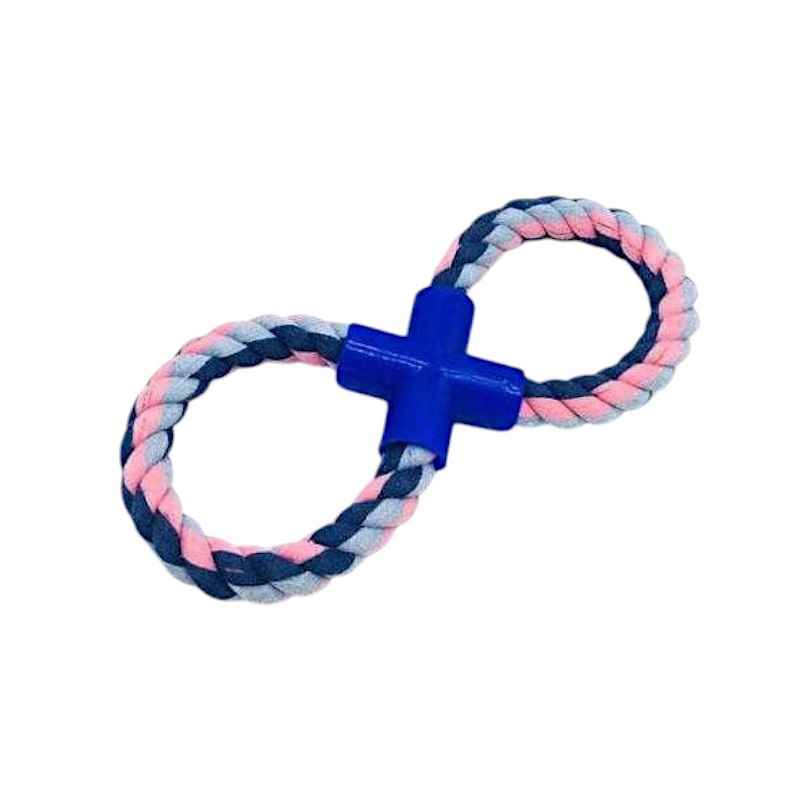 Gioco per cani a forma di 8, realizzato in poliestere resistente e non tossico, ideale per giochi di tiro/resistenza e allo stesso tempo aiuta all’igiene orale del tuo cane pulendo delicatamente e intrattenendo i suoi denti. Lunghezza totale: 30cm.