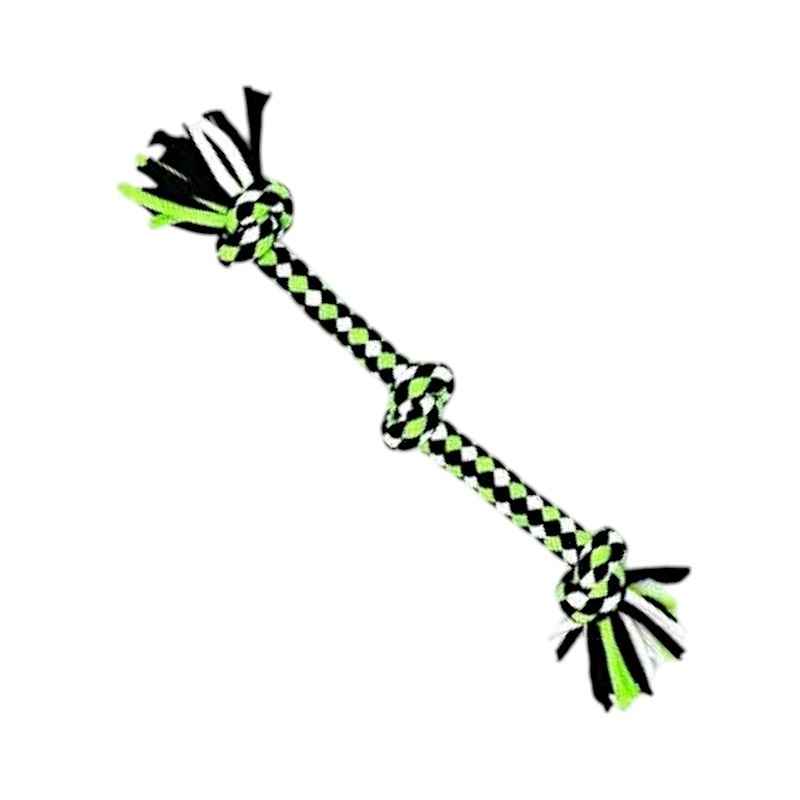 Gioco per cani con corda annodata, in gomma, resistente, poliestere non tossico, ideale per giochi di tiro/resistenza mentre aiuta anche all’igiene orale del tuo cane pulendo delicatamente e intrattenendo i suoi denti. Lunghezza totale: 30cm.