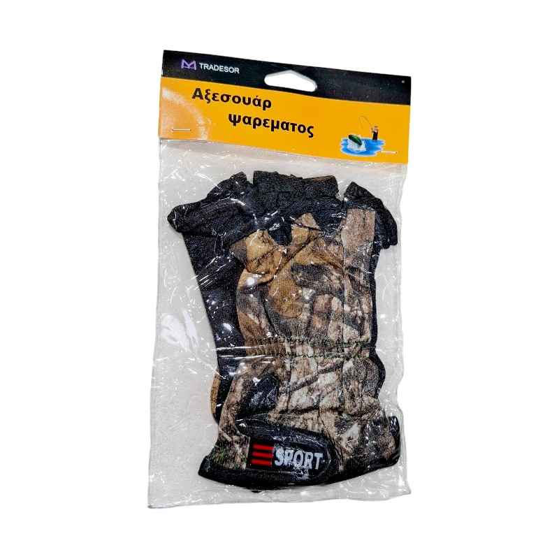Guanto protettivo da pesca tagliato, in materiale sintetico morbido e traspirante, con palmo antiscivolo. Regolabile con velcro.