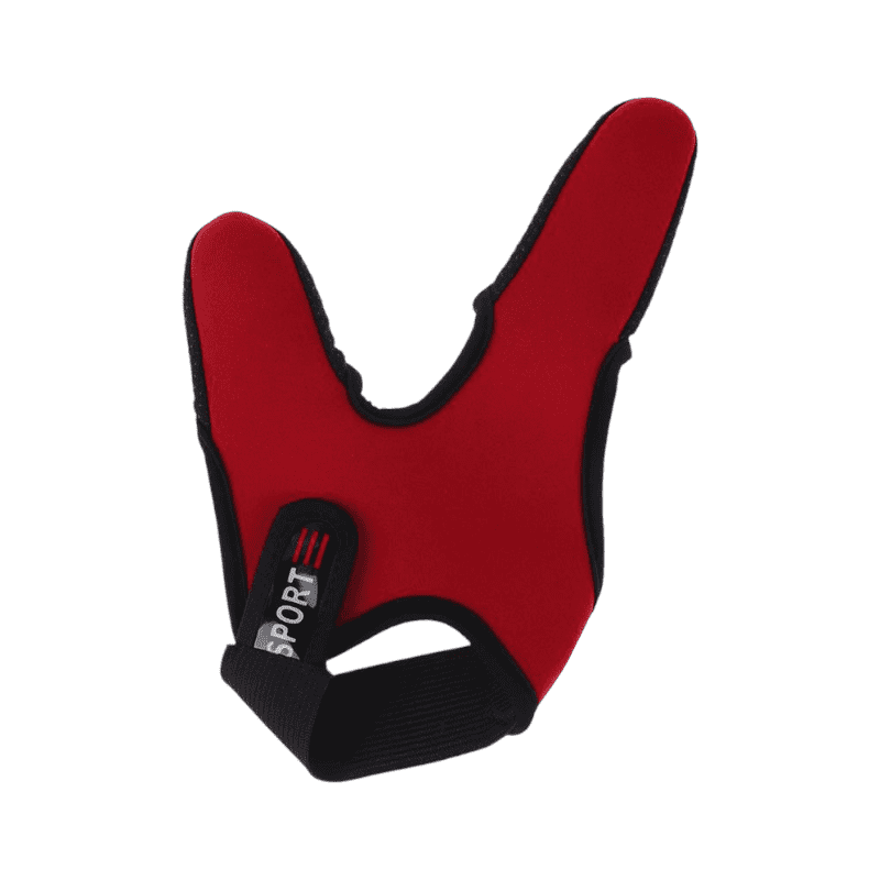 Guanto protettivo da pesca per indice e pollice in materiale sintetico traspirante con chiusura regolabile in velcro. Comodo e pratico, disponibile in rosso, nero e blu.