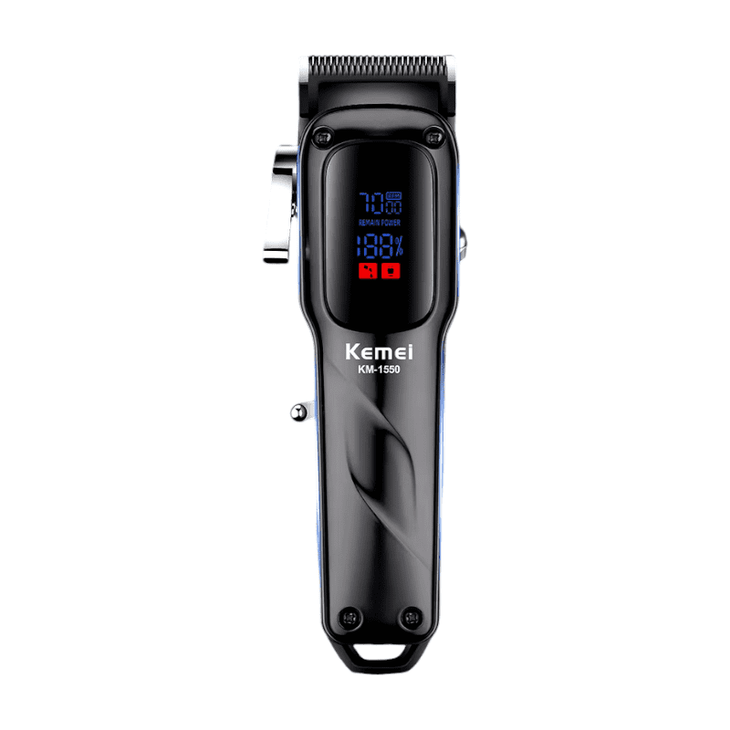 Rasoio ricaricabile con batteria da 2000mAh, schermo LED e lama in acciaio inossidabile. Include 6 pettini e ricarica USB — ideale per capelli, barba e corpo.