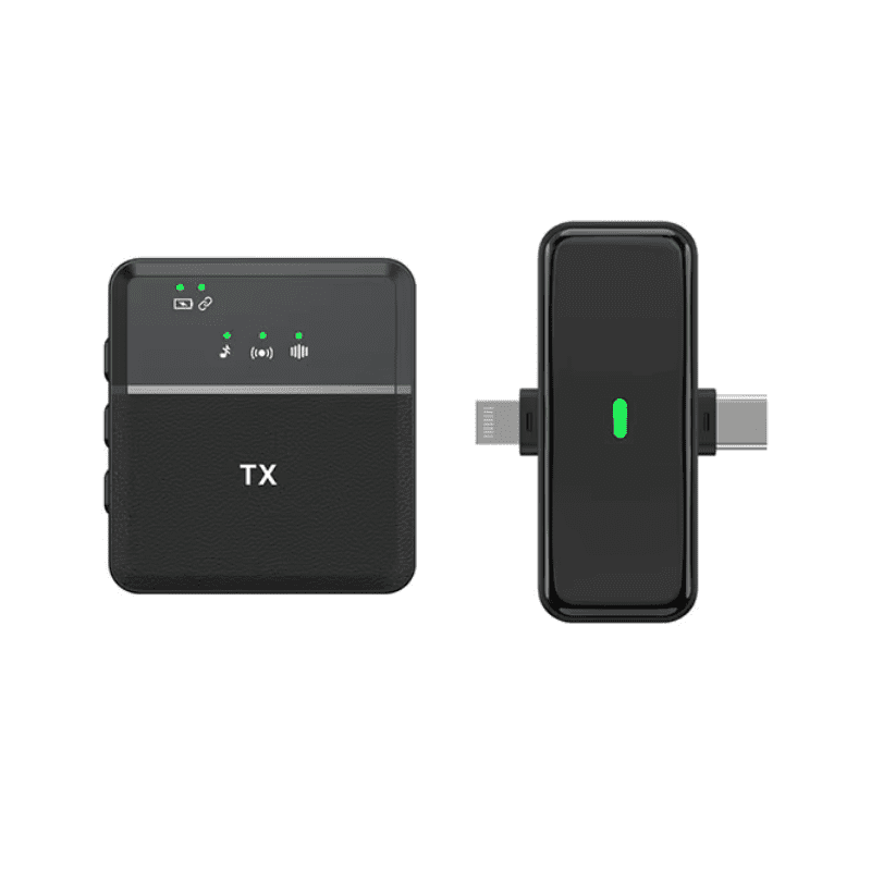 Microfono mini condensatore ricaricabile wireless per registrazione audio con trasmettitore a doppio connettore Type-C & Lightning, che si collega facilmente al tuo smartphone e tecnologia Noise Cancelling, ideale per Vlogging, Podcast, live streaming, insegnamento/riunioni online, interviste, video professionali ecc.