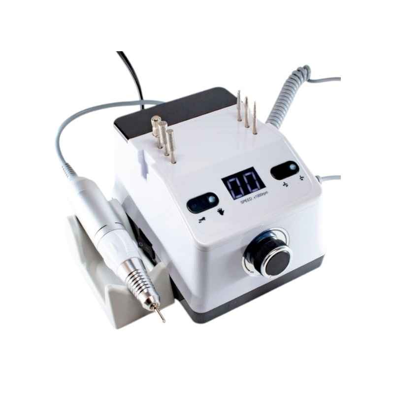 Fresa professionale per unghie per manicure-pedicure 65W con base di supporto, con funzione rotazione oraria e antioraria e pedale a piede.