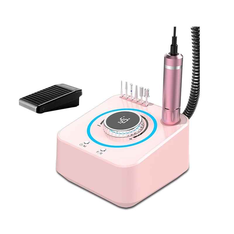 Fresa professionale per manicure-pedicure con supporto per penna e pedale. Dispone di velocità regolabile, funzione a basso rumore e vibrazioni e design ergonomico per un uso facile e confortevole.