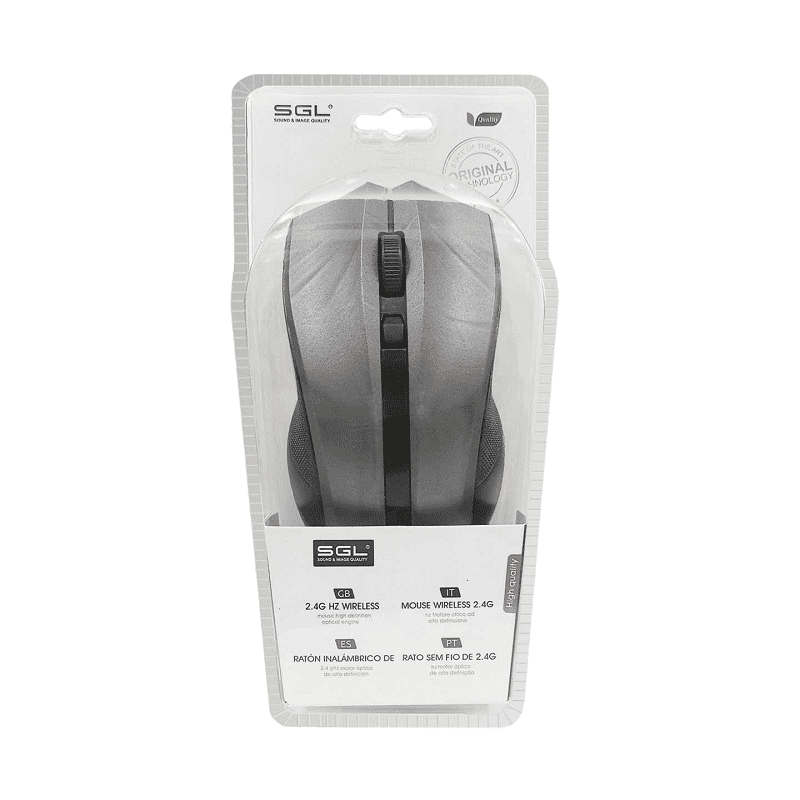 Dispone di ricevitore USB bluetooth. Mouse wireless per PC della SGL, ottico, con design ergonomico e alte prestazioni. Caratteristiche: Connessione con dongle (trasmettitore) che si inserisce nella porta USB,