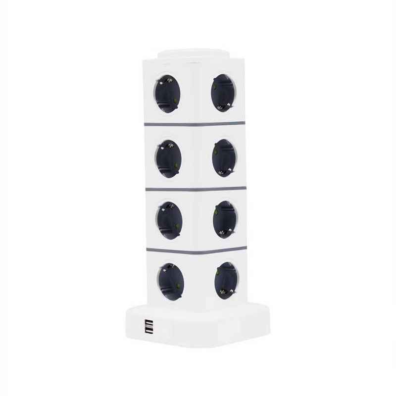 Multipresa verticale a 16 posti con prese di tipo Schuko e 2 porte USB per ricarica immediata. Cavo di 3 metri per una maggiore flessibilità nel posizionamento.