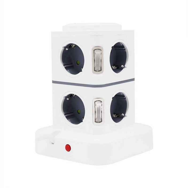 Multipresa verticale a 8 posti con interruttori indipendenti e prese di tipo Schuko, ideale per risparmiare spazio. Cavo da 3m per flessibilità nel posizionamento.