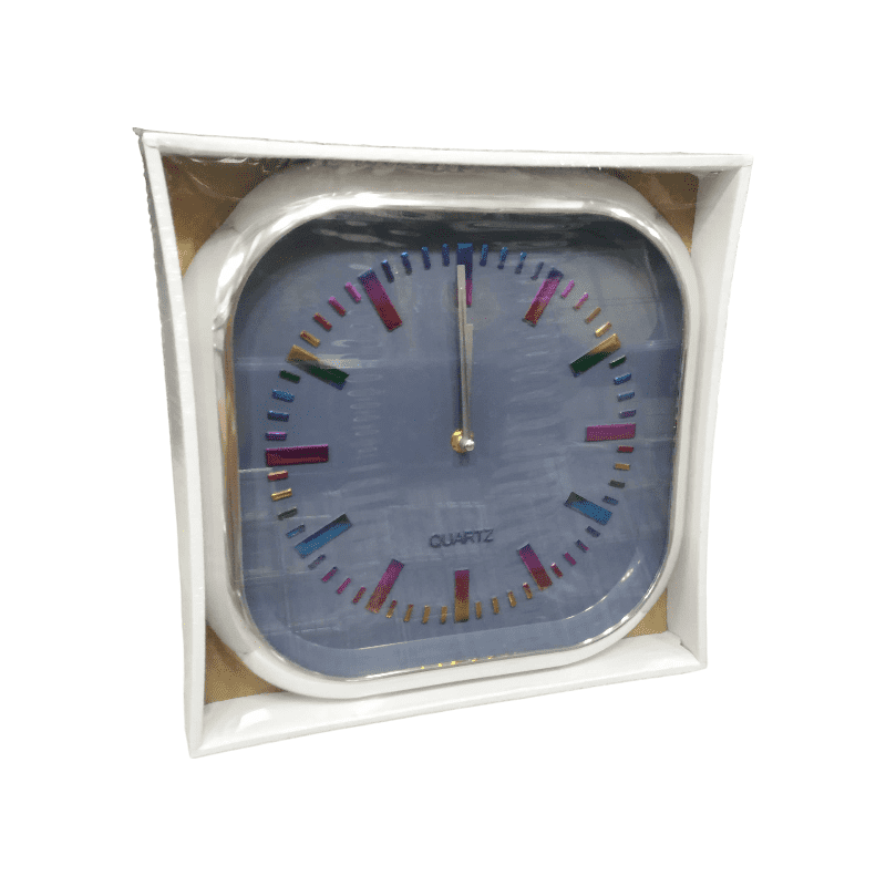 Orologio da parete in design minimal moderno che può adattarsi a ogni ambiente. Materiale: plastica, Dimensioni: 30x30x3,5 cm.