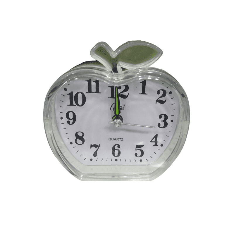 Orologio da tavolo-sveglia con design moderno a forma di mela e dimensioni pratiche che possono adattarsi a qualsiasi ambiente.