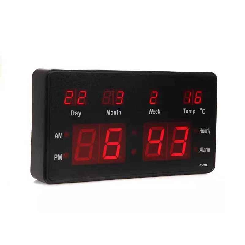 Orologio a pannello digitale – Termometro – Calendario con LED rosso. Piccole dimensioni per il posizionamento sia a parete che su tavolo.